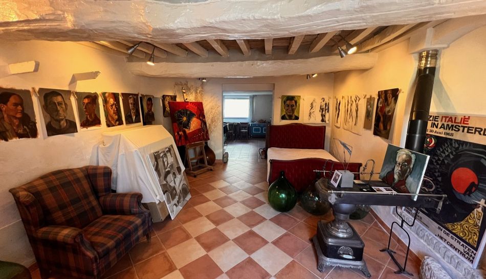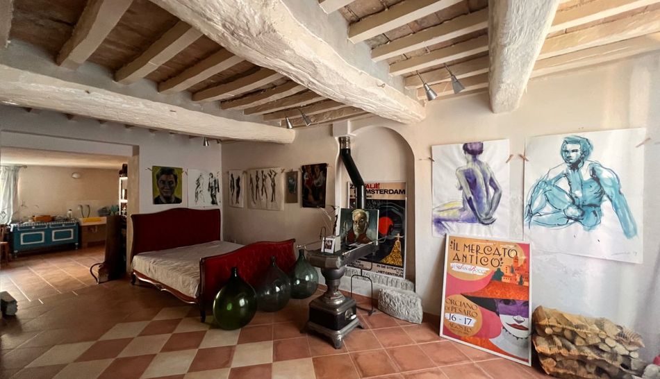 Het huis is als volgt verdeeld : op de begane grond een taverne wat gebruikt wordt als atelier, en twee kelderruimtes , waarvan er één als slaapkamer gebruikt wordt en een badkamer. Op de eerste verdieping bevind zich een ruime keuken, en woonkamer met kachel, een bergruimte, en een prachtig terras . Op de tweede verdieping twee slaapkamers en twee badkamers en een bergruimte