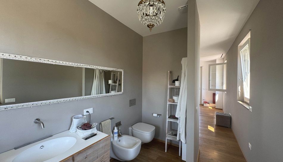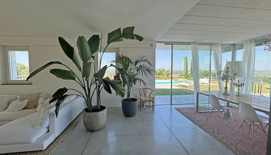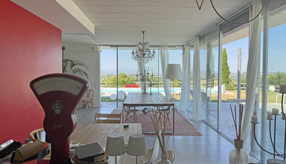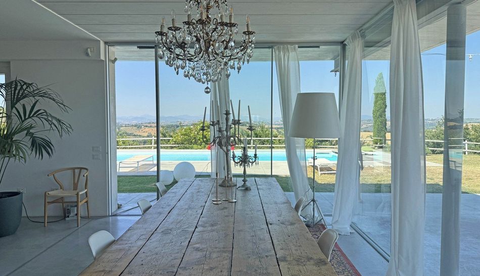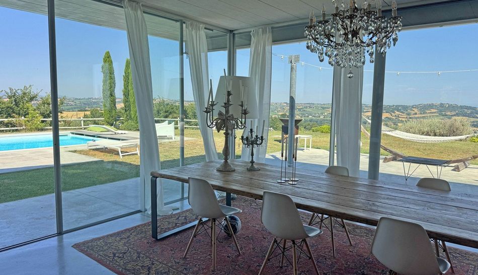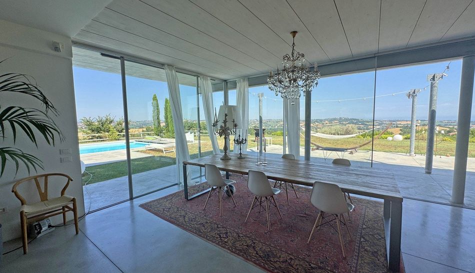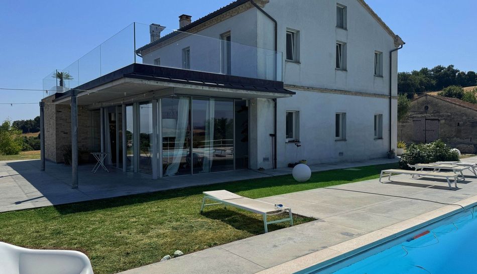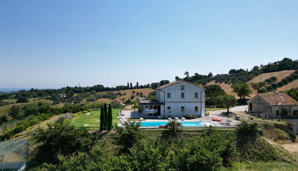 Het werd in 2017 volledig herbouwd en is het resultaat van een architectonisch project met nauwgezette aandacht voor details, waarbij elke keuze - van de fijne materialen tot de indeling van de ruimtes - elegantie, soberheid en harmonie uitstraalt. Hier kunt u een sfeer van verfijnde rust inademen, in perfecte balans tussen natuur, licht en design. Op de begane grond vervagen de grote ramen die van de vloer tot het plafond reiken de grenzen tussen binnen en buiten, waardoor er een gevoel van naadloze verbinding met het landschap ontstaat. De ster van de show buiten is het panoramische zwembad, dat lijkt af te lopen in de blauwe zee. Het buitenterrein is voorzien van een padelbaan, ideaal voor momenten van ontspanning en gezelligheid. Het warme en lichte interieur komt uit op een ruime woonkamer met een gashaard, een verfijnde keuken met eethoek en een antieke eikenhouten muur die op discrete en elegante wijze een gastenbadkamer, een bijkeuken en een handige wasruimte verbergt: een slimme, functionele en smaakvolle designoplossing. Boven bevinden zich drie slaapkamers, waaronder de master suite met eigen badkamer en inloopkast, een tweede badkamer en een groot panoramisch terras, ideaal om te genieten van het landschap van de Marche, vol kleuren, geuren en stilte.