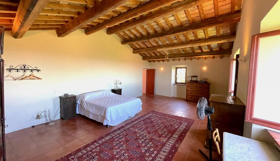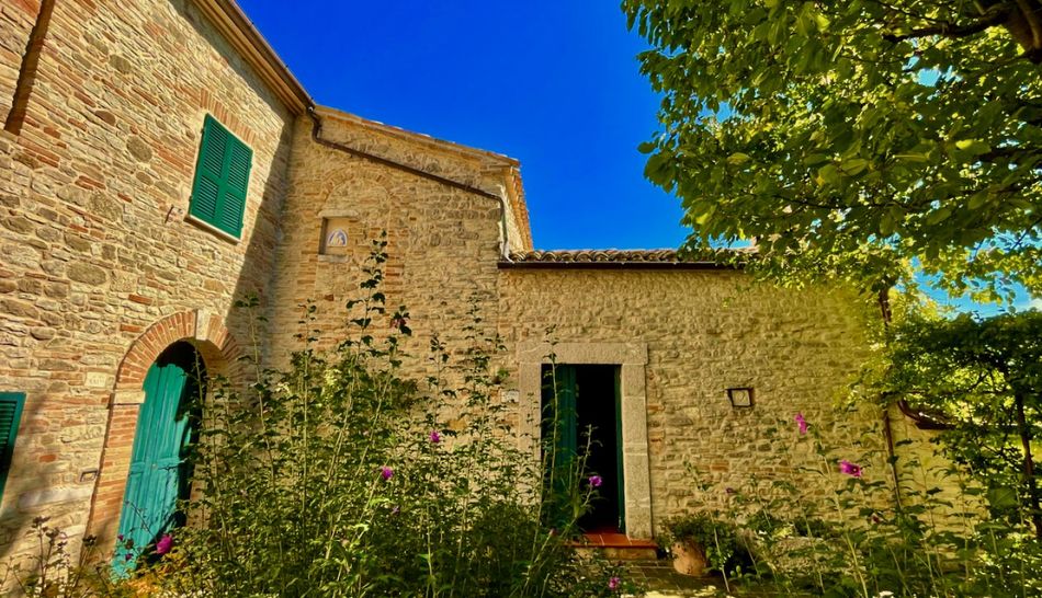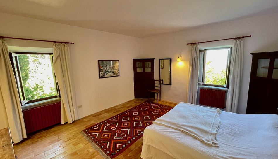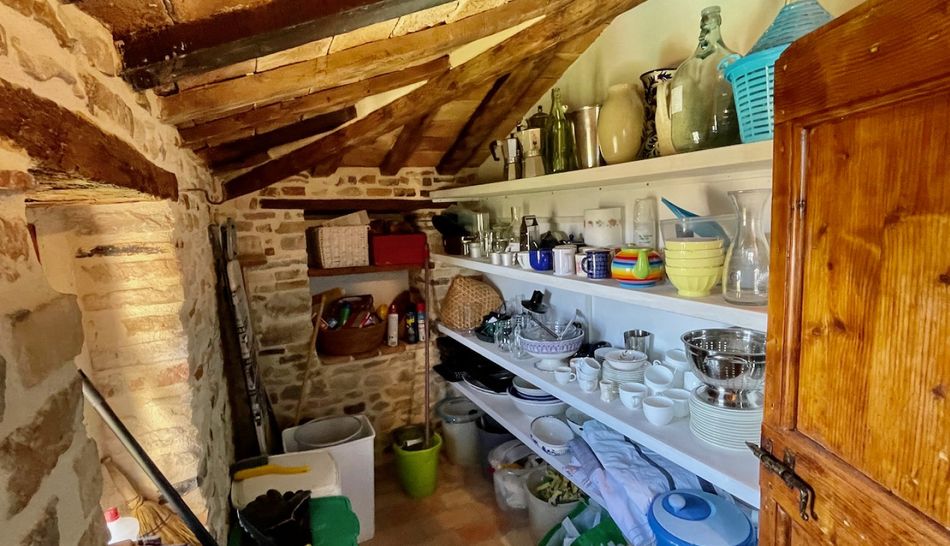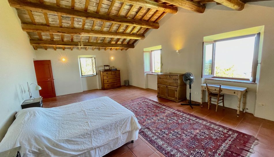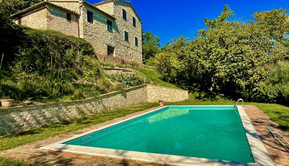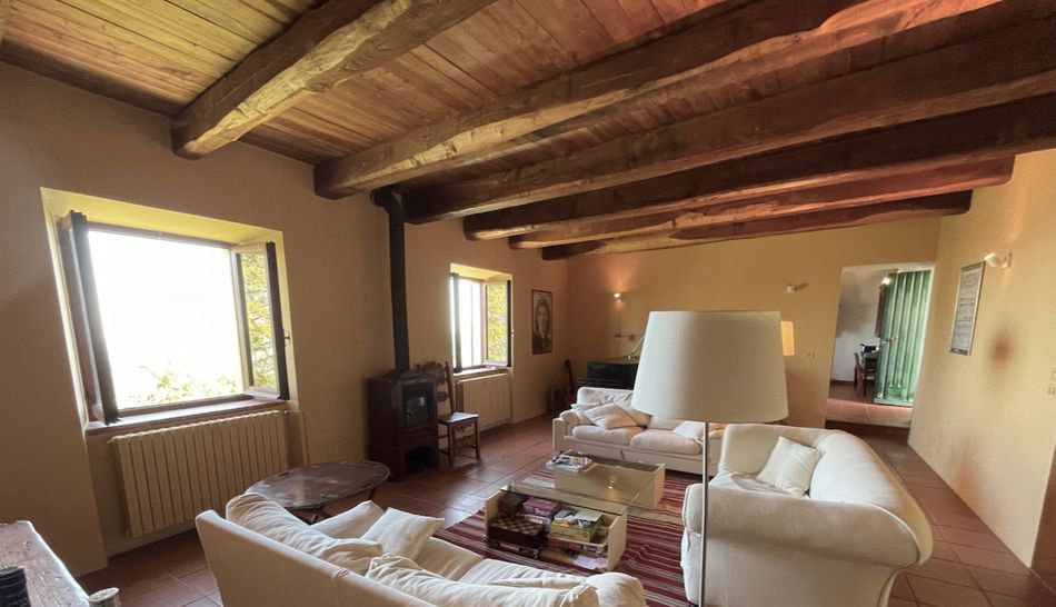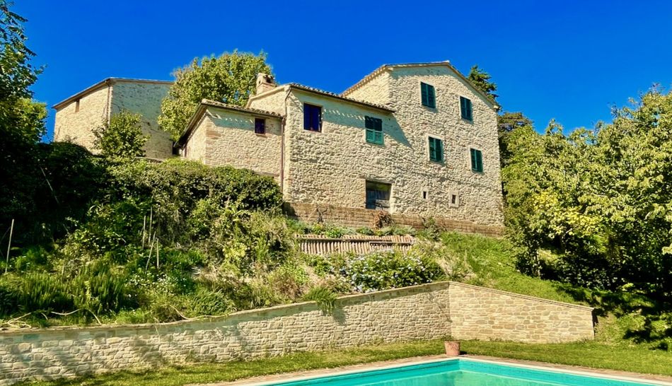 Het te koop aangeboden pand is geen typisch rechthoekig of vierkant huis. Het is ook geen huis waar alles perfect is, en dat is precies de bedoeling. Het zijn de originaliteit en authenticiteit die dit pand uniek maken. Binnen zijn er verschillende niveau verschillen , samen met een mix van terra cotta tegels en talloze originele balken en lateien, allemaal authentiek en origineel. Het metselwerk aan de buitenkant is werkelijk spectaculair en dateert waarschijnlijk allemaal uit twee of drie eeuwen. Het tweede kenmerk van dit pand is dat het eigenlijk een complex van gebouwen is, drie om precies te zijn. Naast het hoofdgebouw van 305 m² (plus de kelder van 88 m²) zijn er twee stenen bijgebouwen, een van 45 m² en de andere van ongeveer 98 m². Deze worden momenteel gebruikt als opslagruimtes, maar deze kunnen ook voor andere doeleinden worden omgebouwd, wat een breed scala aan mogelijkheden opent (afhankelijk van de bouwvergunningen en de huidige regelgeving). Het complex is omgeven met bomen, hagen en planten die een aangename binnenplaatssfeer tussen de gebouwen creëren. Het is ook vermeldenswaard dat het complex aan de rand van een klein gehucht ligt met een bar en een paar aangrenzende huizen. Dit geeft het een gemeenschapsgevoel en de luxe van een korte wandeling voor een cappuccino . Net buiten het complex geniet u van van de mooie uitzichten van het landschap in de Marche , dat is op zich al een unieke ervaring is . Het uitzicht is wijds en panoramisch over het centrale deel van Le Marche, met onder meer de Adriatische Zee, het Sibillini-gebergte, glooiende heuvels, velden met zomerzonnebloemen, de iconische Monte Conero en minstens 35 heuveldorpjes, allemaal 's avonds verlicht. Adembenemend is een understatement. Het is zo indrukwekkend dat we bijna vergaten te vermelden dat het zwembad alles omvat, met het panoramische uitzicht aan de ene kant en het imposante hoofdgebouw aan de andere kant, net daarboven. De ligging van het zwembad zorgt voor een natuurlijk "infinity-effect". Er zijn ook verschillende terrassen die genieten van het uitzicht , waaronder een terras aan de achterzijde, een terras bij het zwembad, een terras op de binnenplaats en een perfect aangelegde barbecueplek met buitenzitplaatsen. Op de begane grond beginnen we met de grote keuken in landelijke stijl. Deze is zeer eenvoudig en rustiek, maar toch functioneel en gezellig, met een grote originele open haard en een grote ronde eettafel. Merk op dat er een grote pantry grenst aan de keuken. Twee grote ramen bieden uitzicht op de panoramische kant van de keuken, zodat degenen die maaltijden bereiden en afwassen hun klusjes kunnen doen terwijl ze genieten van het spectaculaire uitzicht! Vanuit de keuken komt u in de ruime open woonkamer. Ook hier is de panoramische kant van het huis gevuld met ramen die op hun beurt het uitzicht vullen. Naast centrale verwarming op gas (radiatoren) is er een houtkachel. Direct naast de woonkamer bevindt zich een ruime studeer- of werkkamer. Aan de andere kant van deze ruimte bevindt zich een slaapkamer met een houtkachel, met daarnaast de badkamer op de begane grond. Dit opent een bijzonder interessante mogelijkheid: wonen op één verdieping. Als u met z'n tweeën bent, hoeft u slechts één verdieping schoon te maken, te verwarmen en op te ruimen. Veel klanten vertellen ons dat wonen op één verdieping bevrijdend is! Ook op deze begane grond bevindt zich een grote kelder of berging met ruimte voor wijn, olijfolie, fietsen, een extra koelkast en een wasruimte. Boven zijn vier slaapkamers. Ze zijn allemaal vrij ruim, waarvan één bijzonder ruim. Ze genieten allemaal van veel natuurlijk licht en een aangenaam uitzicht vanuit de ramen. Een van de slaapkamers heeft een eigen badkamer. Een andere kan privé worden gemaakt door simpelweg een deur toe te voegen. En in het midden van deze verdieping bevindt zich een enorme familiebadkamer met een douche en een bad. Kortom, er zijn vijf slaapkamers en vier badkamers. Originele details zijn overal op deze verdieping te vinden, waaronder enkele originele hoekmeubels, balken en antieke deuren.
