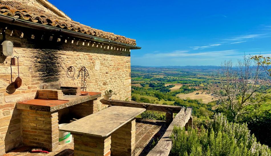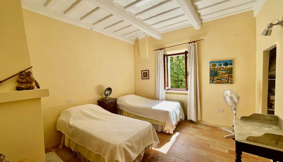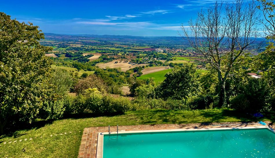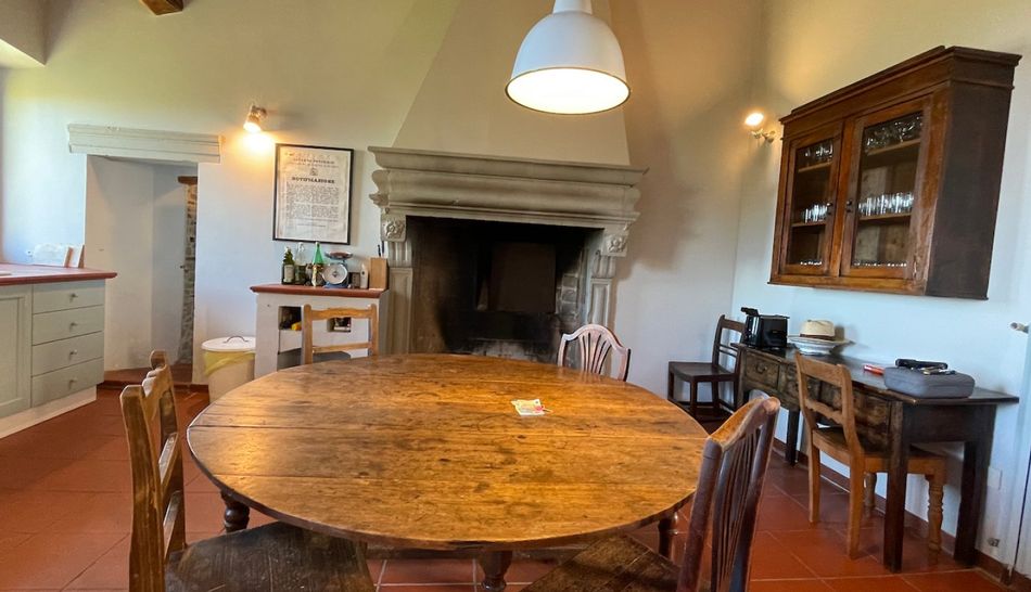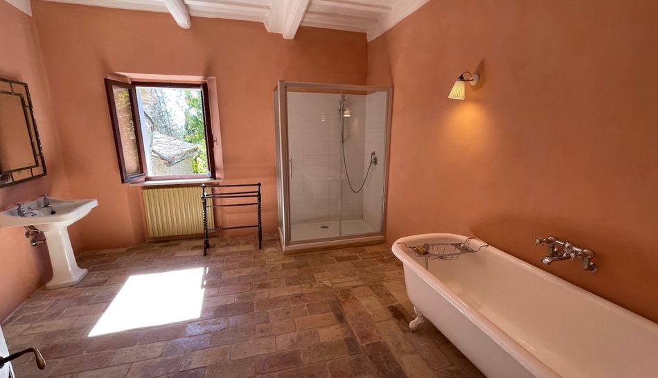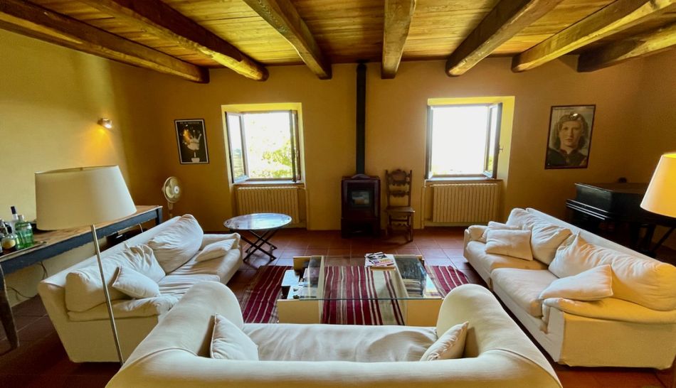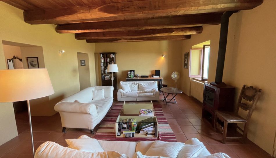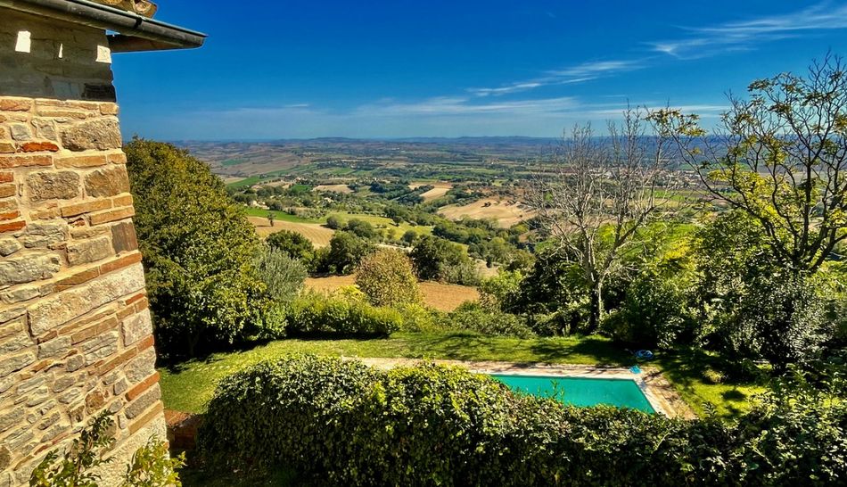 Het te koop aangeboden pand is geen typisch rechthoekig of vierkant huis. Het is ook geen huis waar alles perfect is, en dat is precies de bedoeling. Het zijn de originaliteit en authenticiteit die dit pand uniek maken. Binnen zijn er verschillende niveau verschillen , samen met een mix van terra cotta tegels en talloze originele balken en lateien, allemaal authentiek en origineel. Het metselwerk aan de buitenkant is werkelijk spectaculair en dateert waarschijnlijk allemaal uit twee of drie eeuwen. Het tweede kenmerk van dit pand is dat het eigenlijk een complex van gebouwen is, drie om precies te zijn. Naast het hoofdgebouw van 305 m² (plus de kelder van 88 m²) zijn er twee stenen bijgebouwen, een van 45 m² en de andere van ongeveer 98 m². Deze worden momenteel gebruikt als opslagruimtes, maar deze kunnen ook voor andere doeleinden worden omgebouwd, wat een breed scala aan mogelijkheden opent (afhankelijk van de bouwvergunningen en de huidige regelgeving). Het complex is omgeven met bomen, hagen en planten die een aangename binnenplaatssfeer tussen de gebouwen creëren. Het is ook vermeldenswaard dat het complex aan de rand van een klein gehucht ligt met een bar en een paar aangrenzende huizen. Dit geeft het een gemeenschapsgevoel en de luxe van een korte wandeling voor een cappuccino . Net buiten het complex geniet u van van de mooie uitzichten van het landschap in de Marche , dat is op zich al een unieke ervaring is . Het uitzicht is wijds en panoramisch over het centrale deel van Le Marche, met onder meer de Adriatische Zee, het Sibillini-gebergte, glooiende heuvels, velden met zomerzonnebloemen, de iconische Monte Conero en minstens 35 heuveldorpjes, allemaal 's avonds verlicht. Adembenemend is een understatement. Het is zo indrukwekkend dat we bijna vergaten te vermelden dat het zwembad alles omvat, met het panoramische uitzicht aan de ene kant en het imposante hoofdgebouw aan de andere kant, net daarboven. De ligging van het zwembad zorgt voor een natuurlijk "infinity-effect". Er zijn ook verschillende terrassen die genieten van het uitzicht , waaronder een terras aan de achterzijde, een terras bij het zwembad, een terras op de binnenplaats en een perfect aangelegde barbecueplek met buitenzitplaatsen. Op de begane grond beginnen we met de grote keuken in landelijke stijl. Deze is zeer eenvoudig en rustiek, maar toch functioneel en gezellig, met een grote originele open haard en een grote ronde eettafel. Merk op dat er een grote pantry grenst aan de keuken. Twee grote ramen bieden uitzicht op de panoramische kant van de keuken, zodat degenen die maaltijden bereiden en afwassen hun klusjes kunnen doen terwijl ze genieten van het spectaculaire uitzicht! Vanuit de keuken komt u in de ruime open woonkamer. Ook hier is de panoramische kant van het huis gevuld met ramen die op hun beurt het uitzicht vullen. Naast centrale verwarming op gas (radiatoren) is er een houtkachel. Direct naast de woonkamer bevindt zich een ruime studeer- of werkkamer. Aan de andere kant van deze ruimte bevindt zich een slaapkamer met een houtkachel, met daarnaast de badkamer op de begane grond. Dit opent een bijzonder interessante mogelijkheid: wonen op één verdieping. Als u met z'n tweeën bent, hoeft u slechts één verdieping schoon te maken, te verwarmen en op te ruimen. Veel klanten vertellen ons dat wonen op één verdieping bevrijdend is! Ook op deze begane grond bevindt zich een grote kelder of berging met ruimte voor wijn, olijfolie, fietsen, een extra koelkast en een wasruimte. Boven zijn vier slaapkamers. Ze zijn allemaal vrij ruim, waarvan één bijzonder ruim. Ze genieten allemaal van veel natuurlijk licht en een aangenaam uitzicht vanuit de ramen. Een van de slaapkamers heeft een eigen badkamer. Een andere kan privé worden gemaakt door simpelweg een deur toe te voegen. En in het midden van deze verdieping bevindt zich een enorme familiebadkamer met een douche en een bad. Kortom, er zijn vijf slaapkamers en vier badkamers. Originele details zijn overal op deze verdieping te vinden, waaronder enkele originele hoekmeubels, balken en antieke deuren.
