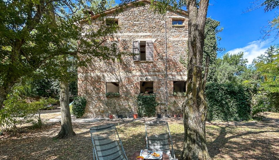 Deze boerderij, gelegen in een glooiend, ongerept landschap, ligt op slechts 10 km (15 minuten) van Urbino, een UNESCO-werelderfgoed. Dit huis van natuursteen vertelt een verhaal dat meer dan een eeuw teruggaat. Het werd begin 20e eeuw zorgvuldig gerenoveerd met respect voor het landschap en het licht, en herbouwd met dezelfde originele 19e-eeuwse materialen, waarbij de authentieke ziel behouden bleef. Het is bereikbaar via een 400 meter lange onverharde weg die door kleine dorpjes slingert die uitnodigen tot rust en stilte. De volledig omheinde tuin van 3000 vierkante meter herbergt eeuwenoude bomen, een moestuin en een weelderige boomgaard met pruimen, abrikozen, vijgen, peren, appels en bramen. Libanese ceders, cipressen, lariksen en meidoorns omringen het terrein en creëren een oase waar de tijd lijkt te vertragen.