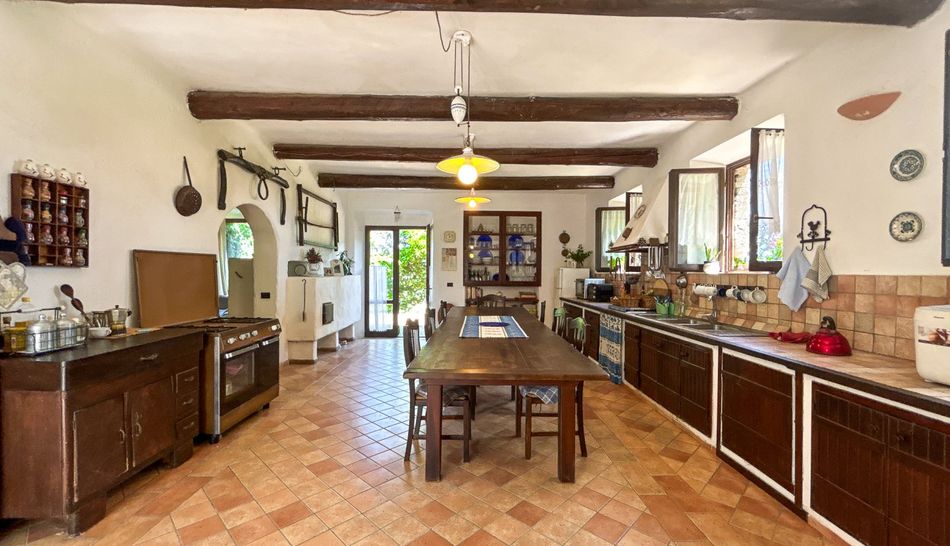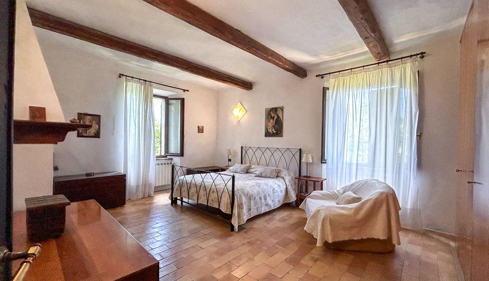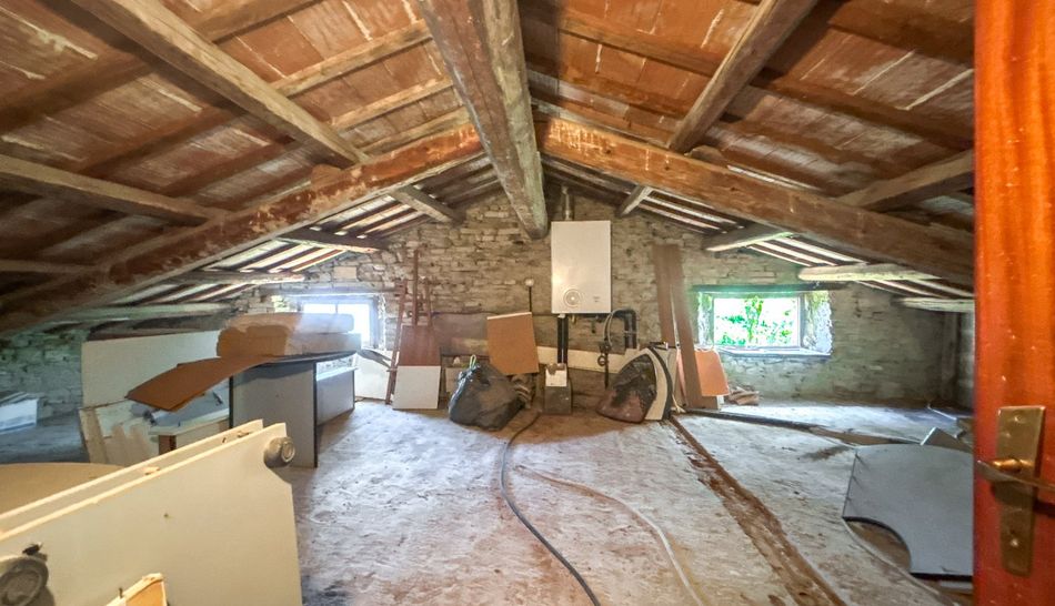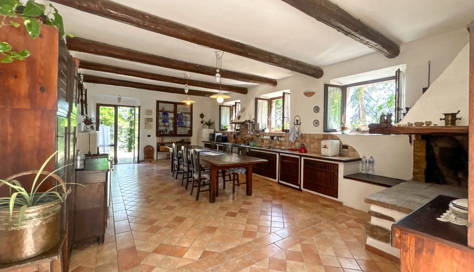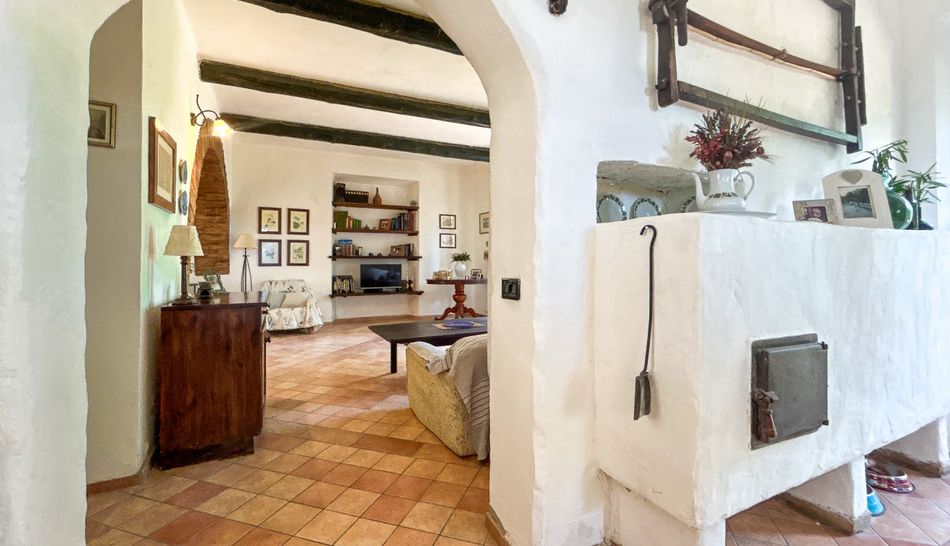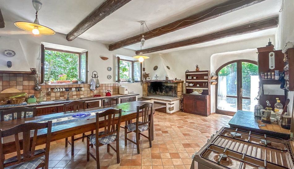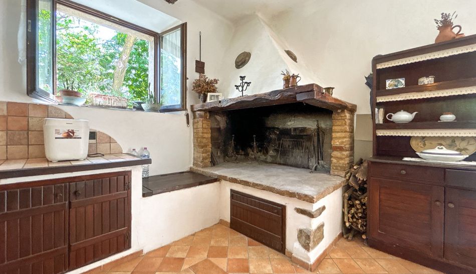 De zon verlicht het huis de hele dag door en filtert door de hoge bomen in de tuin. Bij binnenkomst in deze charmante boerderij, valt op de begane grond direct een grote eetkamer met keuken, open haard en Tiroolse kachel (stube) op. Aangrenzend is een badkamer met douche, een gezellige woonkamer en een studeerkamer met bakstenen bogen. Boven zijn vier ruime slaapkamers – waarvan één met open haard – en een grote, hoge zolder in het midden, perfect voor opslag of extra woonruimte. De afwerking weerspiegelt een liefde voor traditie: terracotta vloeren, zichtbare balken, gerestaureerde antieke deuren en houten ramen met dubbele beglazing en luiken. Het dak is in 2002 vervangen en de gevel is gezandstraald om de originele natuursteen en bakstenen te onthullen en het oude pleisterwerk te verwijderen. De woning beschikt over een waterput, gemeentewater, GPL-verwarming en een grote stal. Het omliggende land wordt volledig biologisch bewerkt, wat zorgt voor een gezonde en schone omgeving.