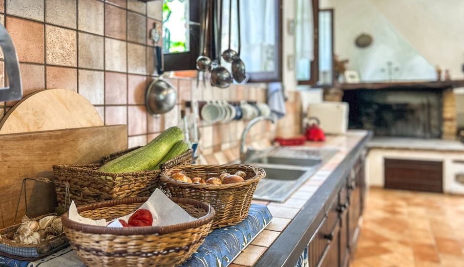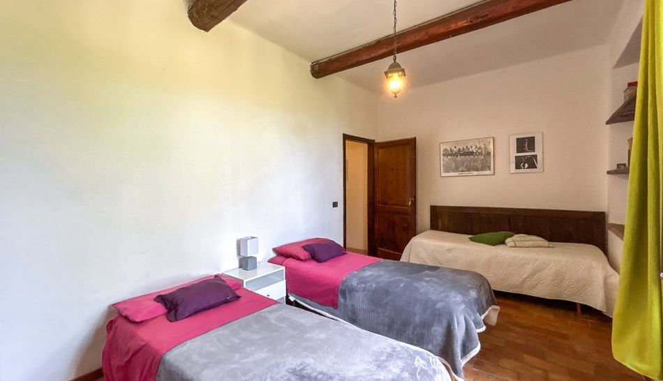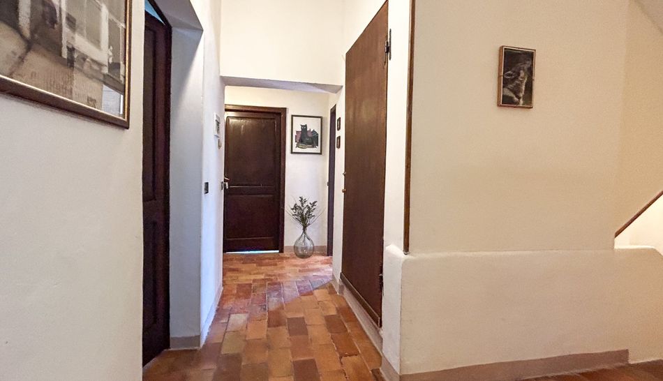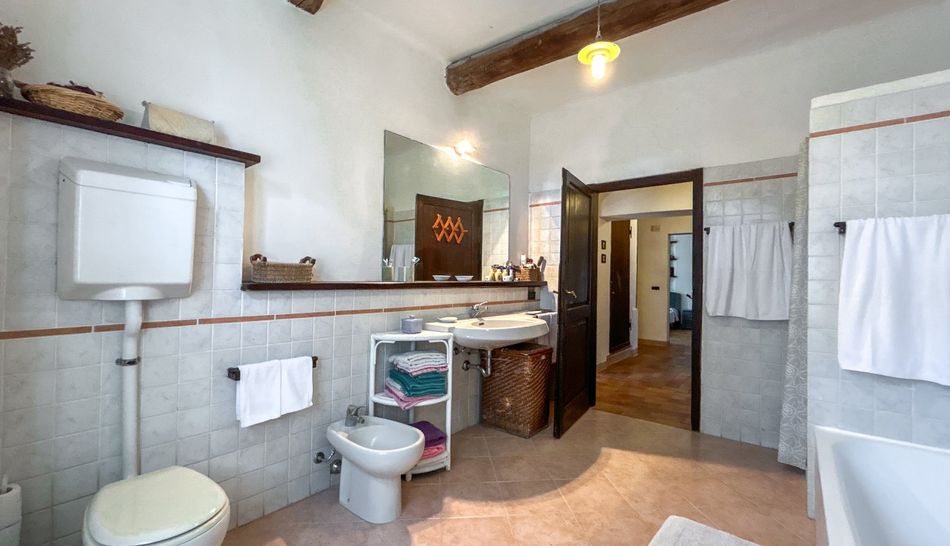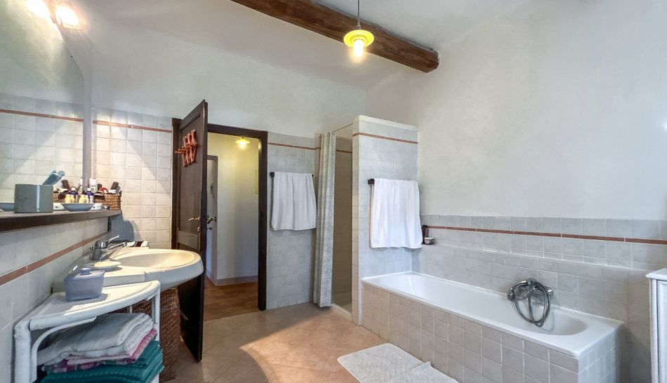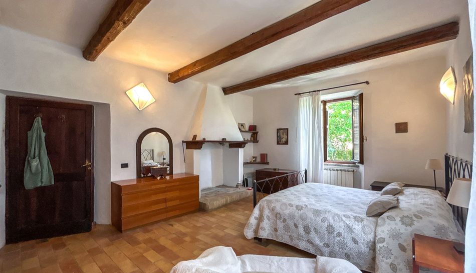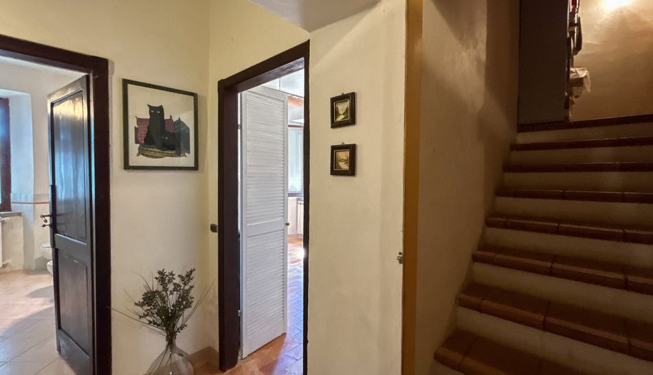 De zon verlicht het huis de hele dag door en filtert door de hoge bomen in de tuin. Bij binnenkomst in deze charmante boerderij, valt op de begane grond direct een grote eetkamer met keuken, open haard en Tiroolse kachel (stube) op. Aangrenzend is een badkamer met douche, een gezellige woonkamer en een studeerkamer met bakstenen bogen. Boven zijn vier ruime slaapkamers – waarvan één met open haard – en een grote, hoge zolder in het midden, perfect voor opslag of extra woonruimte. De afwerking weerspiegelt een liefde voor traditie: terracotta vloeren, zichtbare balken, gerestaureerde antieke deuren en houten ramen met dubbele beglazing en luiken. Het dak is in 2002 vervangen en de gevel is gezandstraald om de originele natuursteen en bakstenen te onthullen en het oude pleisterwerk te verwijderen. De woning beschikt over een waterput, gemeentewater, GPL-verwarming en een grote stal. Het omliggende land wordt volledig biologisch bewerkt, wat zorgt voor een gezonde en schone omgeving.