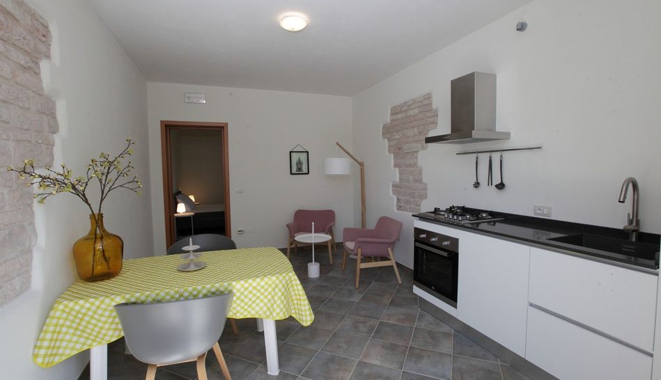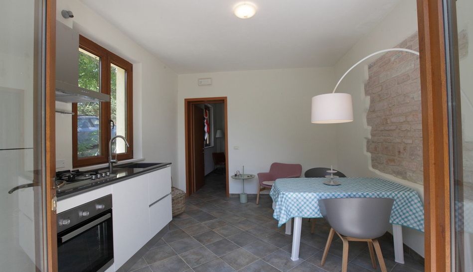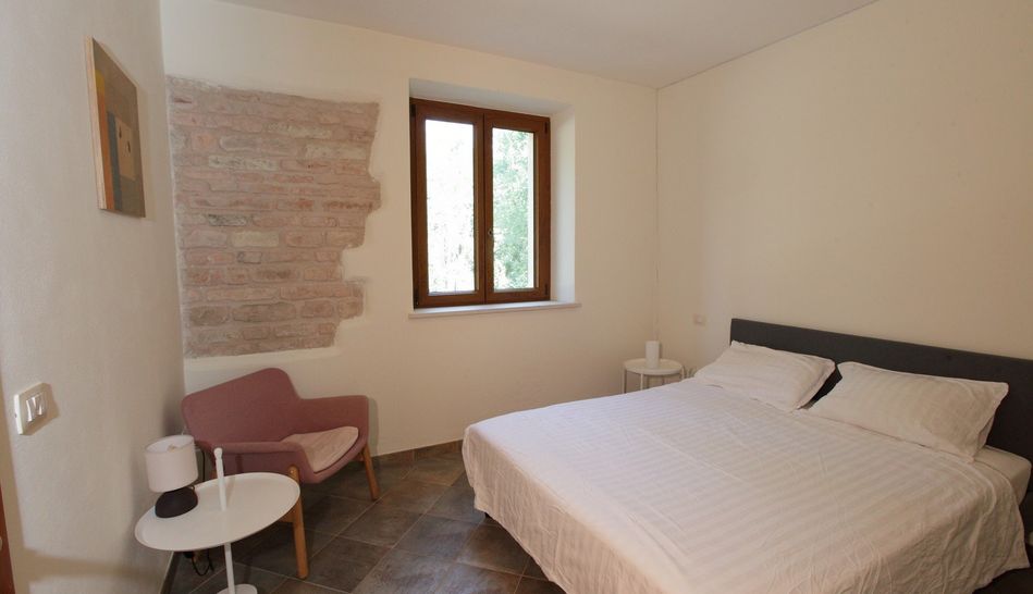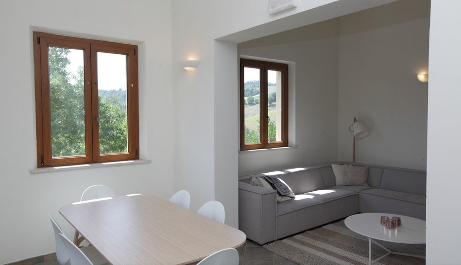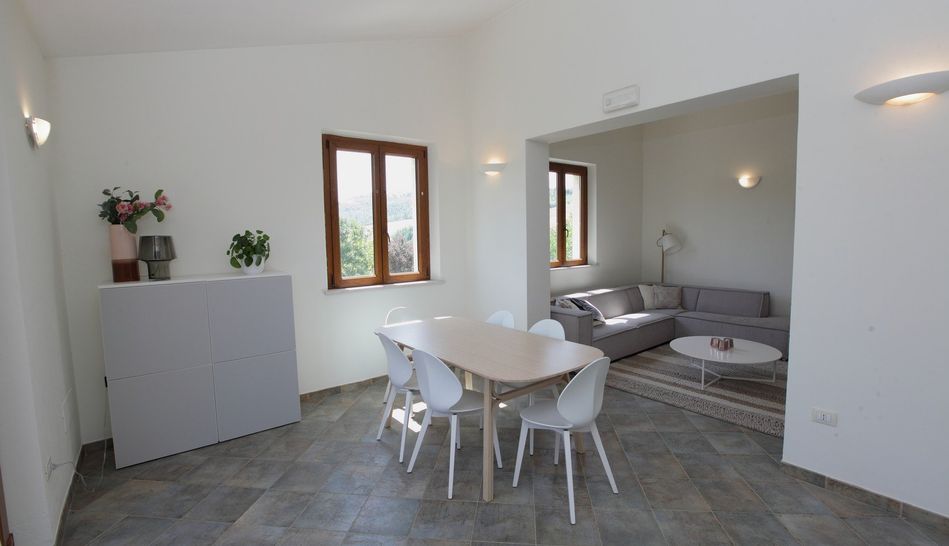 Lux landhuis gelegen tussen de glooiende groene heuvels van de regio Marche, bestaande uit vier onafhankelijke appartementen –één grote op de eerste verdieping en drie op de begane grond. Elk appartement beschikt over een ruime woonkamer met in totaal acht slaapkamers en zeven badkamers. De appartementen op de eerste verdieping beschikken bovendien over een groot privéterras.
