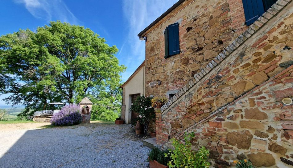 This farm surrounded by 40 hectares of land is for sale in the characteristic Tuscan village of San Giovanni d'Asso, in the municipality of Montalcino, in the province of Siena.