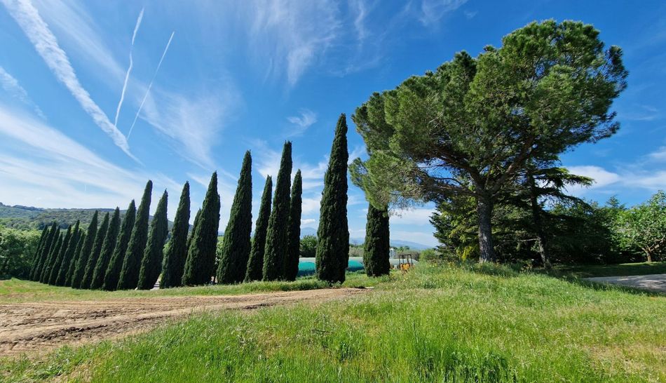 Framing this prestigious farmhouse is a large property of 40 hectares that is divided into 23 ha of arable land, 15 ha of woodland, 1.3 ha of olive grove in production and approximately 1 ha of vineyard and grazing land.